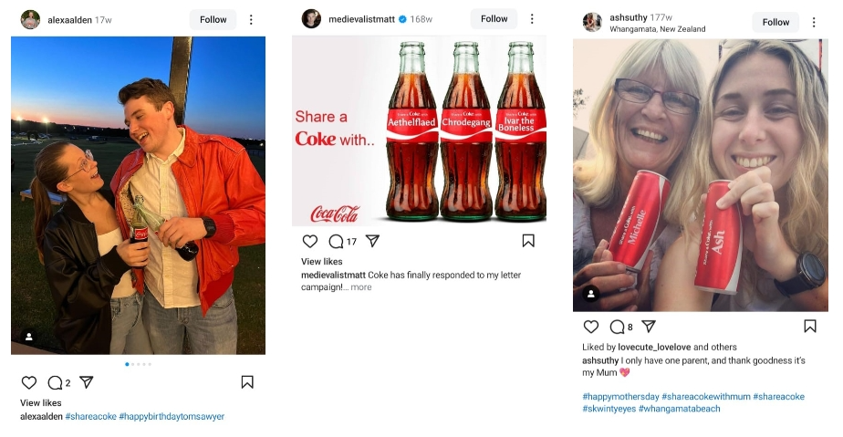 In the “Share a Coke” campaign, Coca-Cola replaced its logo with popular names on bottles and encouraged consumers to find and share these personalized bottles on social media. People began posting authentic, real-life moments with friends and family, featuring their named Coke bottles. This UGC made Coca-Cola feel more personal and relatable. Consumers trusted the brand more as they saw genuine stories shared by their peers rather than polished corporate messaging, reinforcing authenticity.